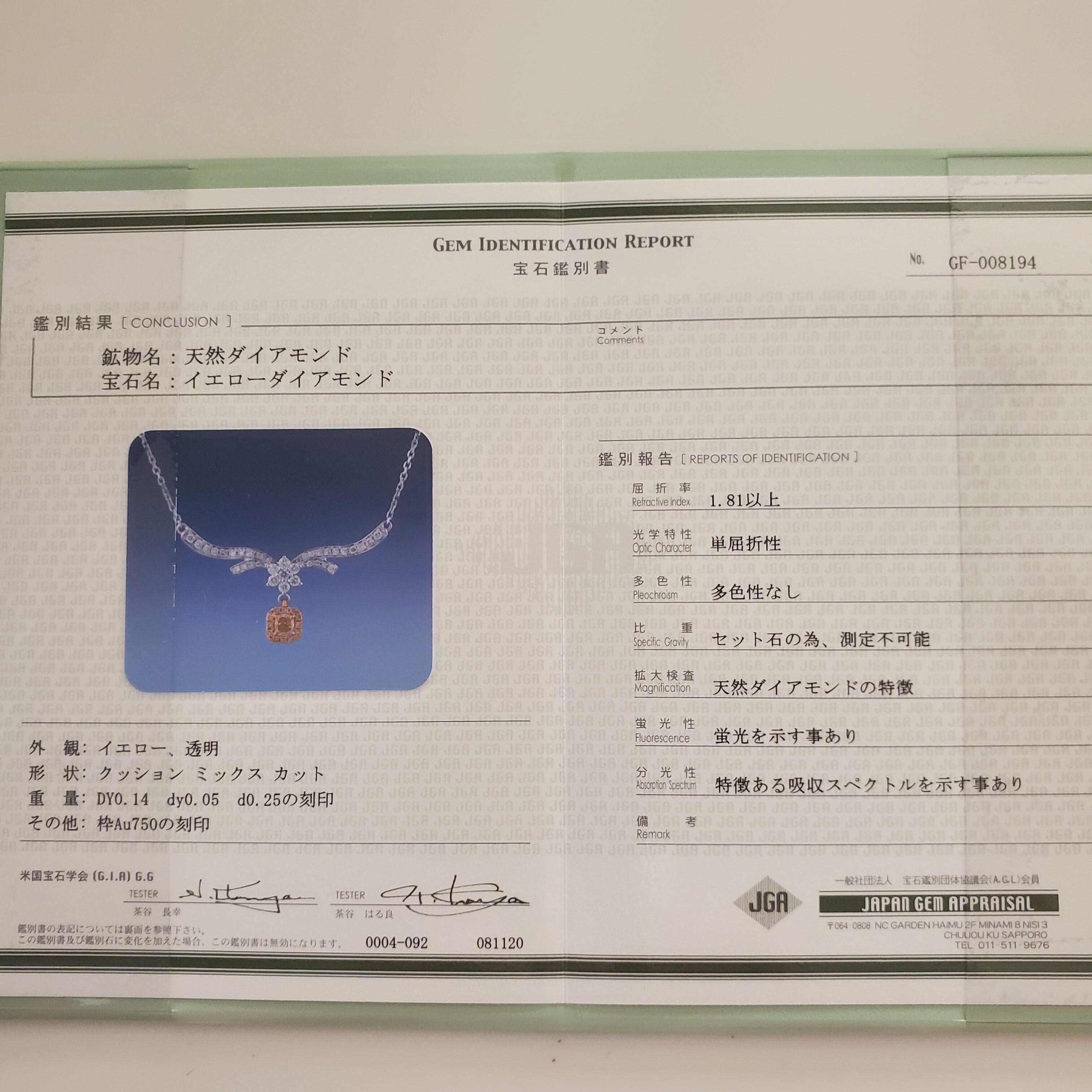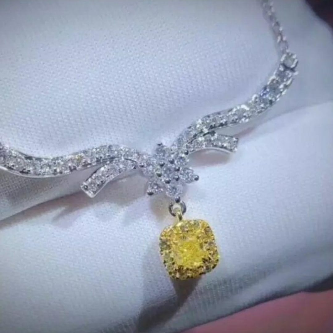 中央で揺れるイエローダイヤモンドが上品な存在感を放つデザイン。
