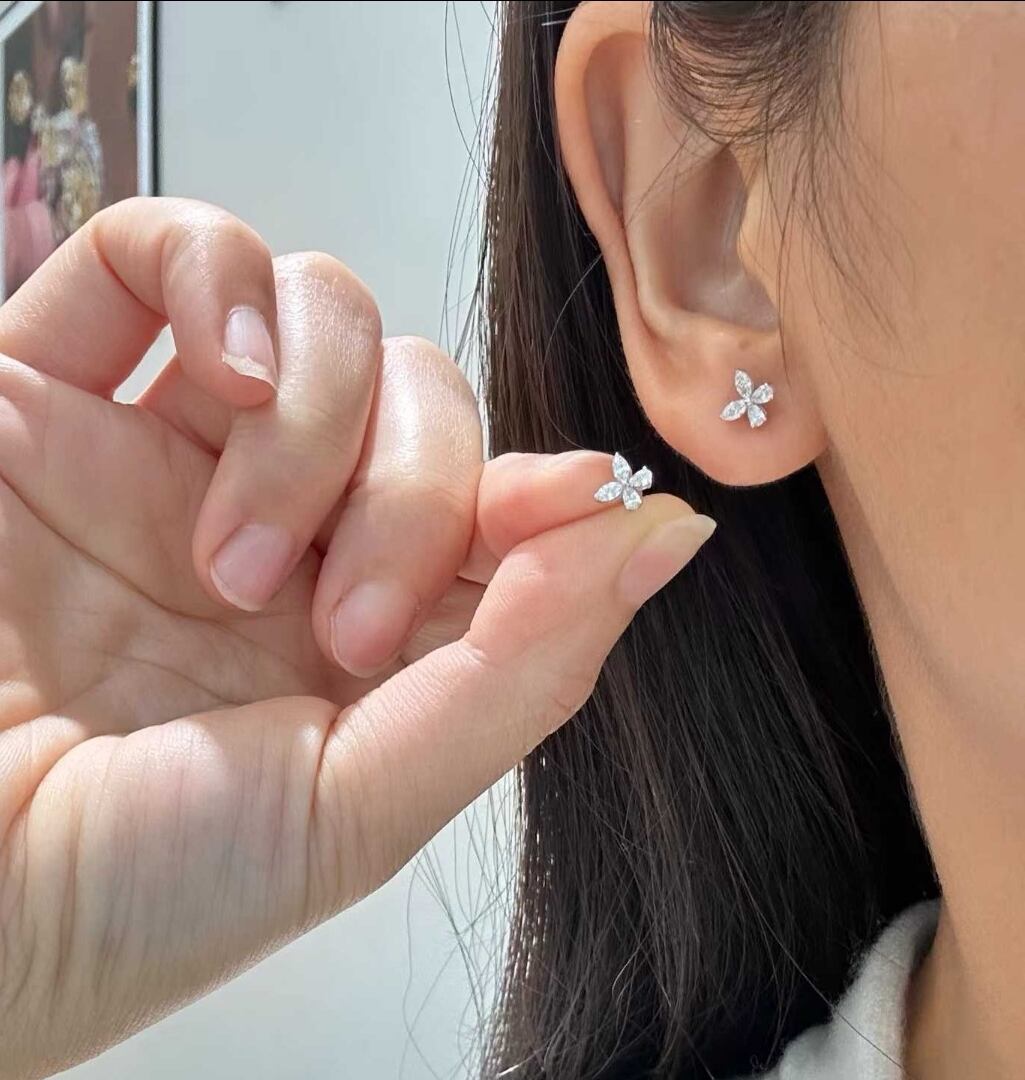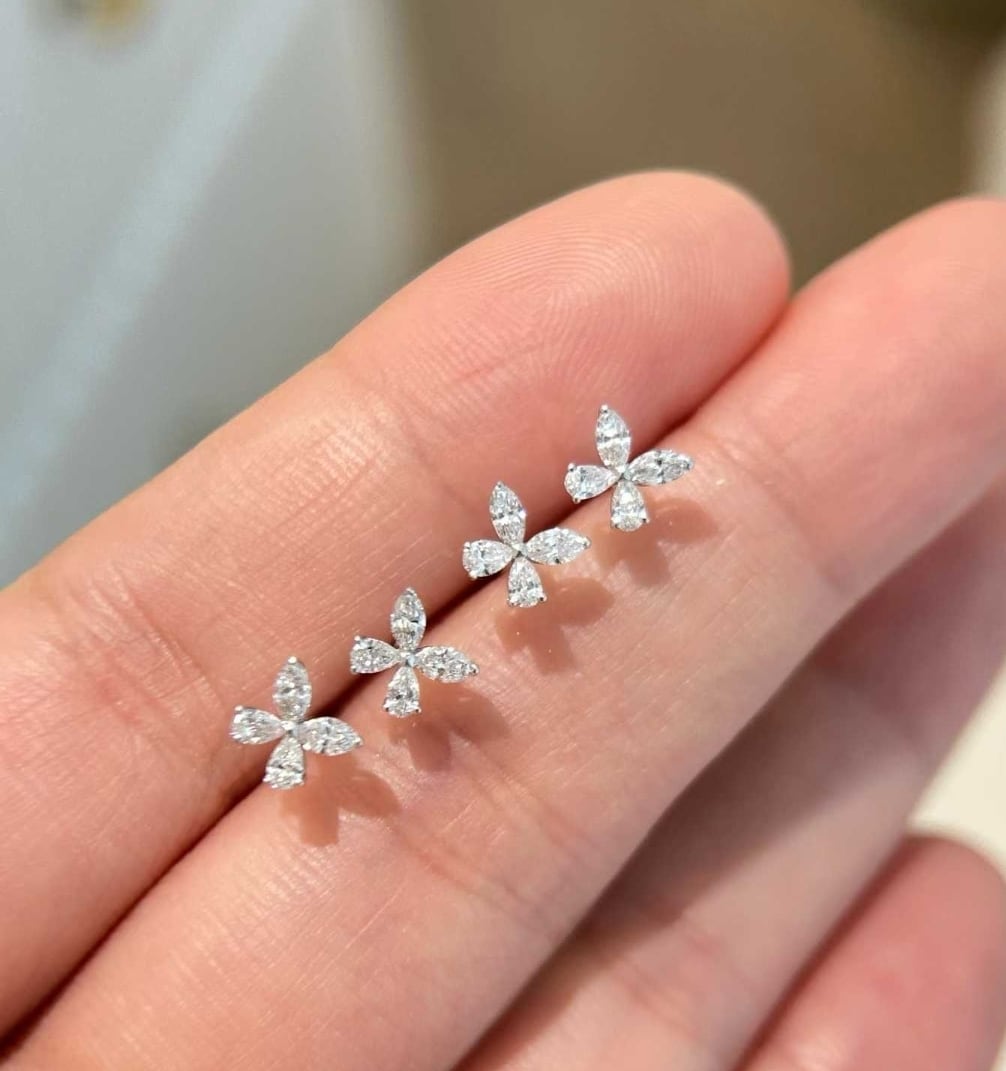マーキスカットダイヤモンドを4石ずつ組み合わせた、可憐なクロスフラワーデザインです。