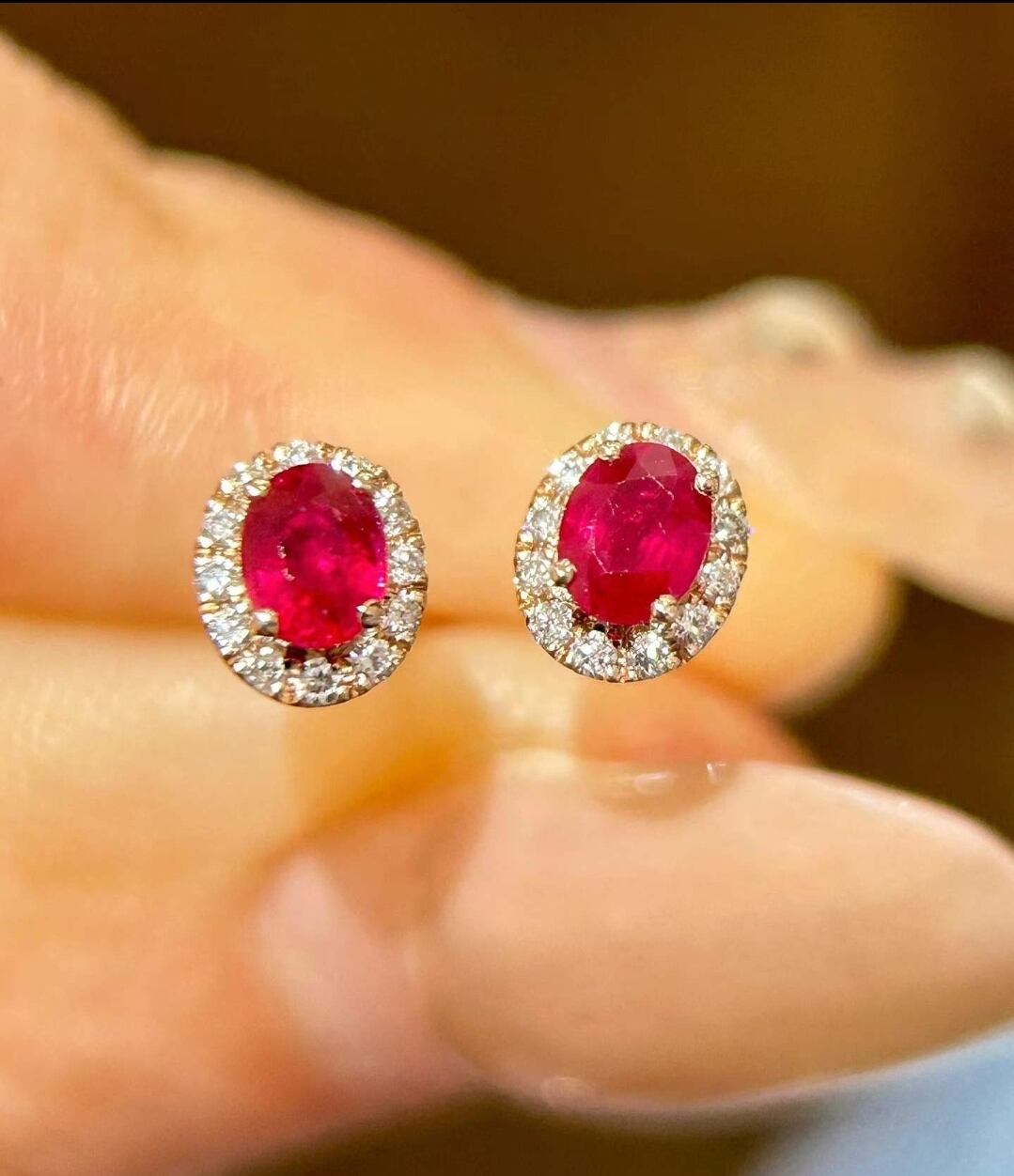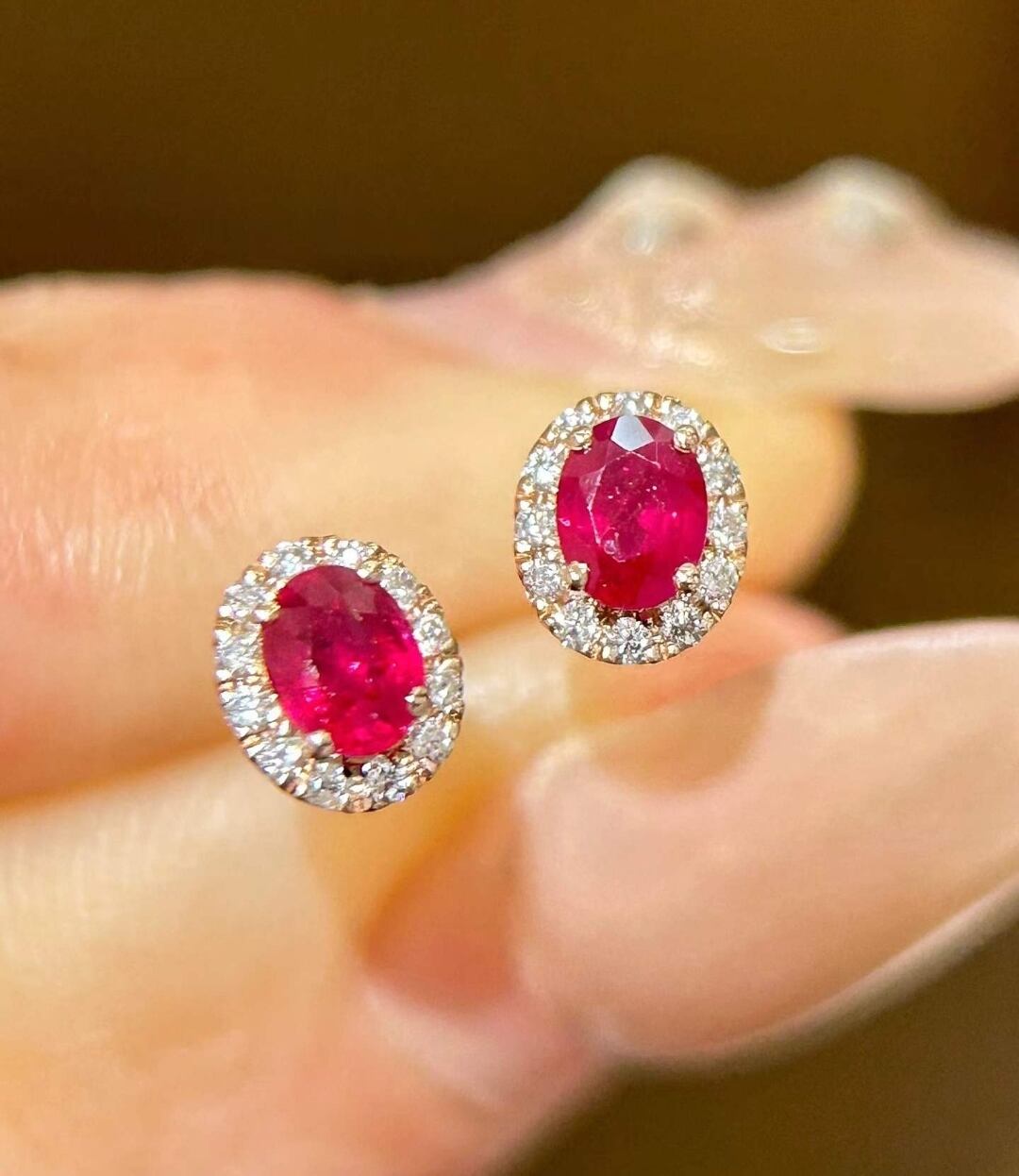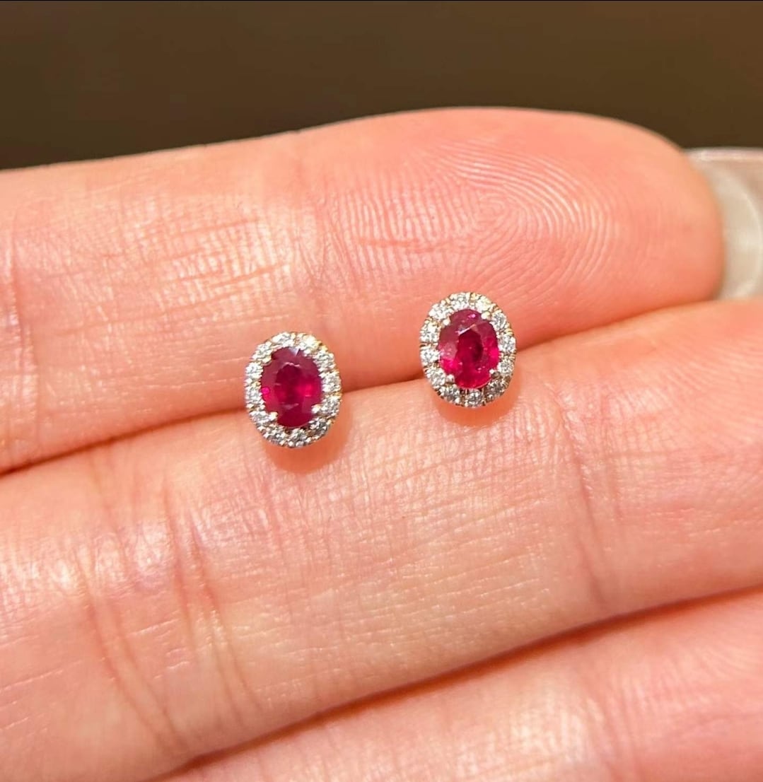 鮮やかな赤が視線を惹きつける、天然ルビーピアス。