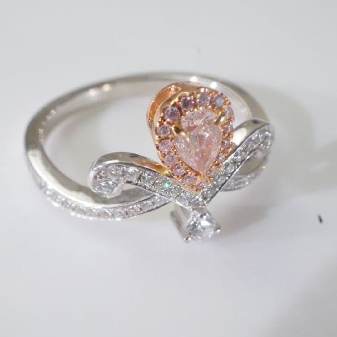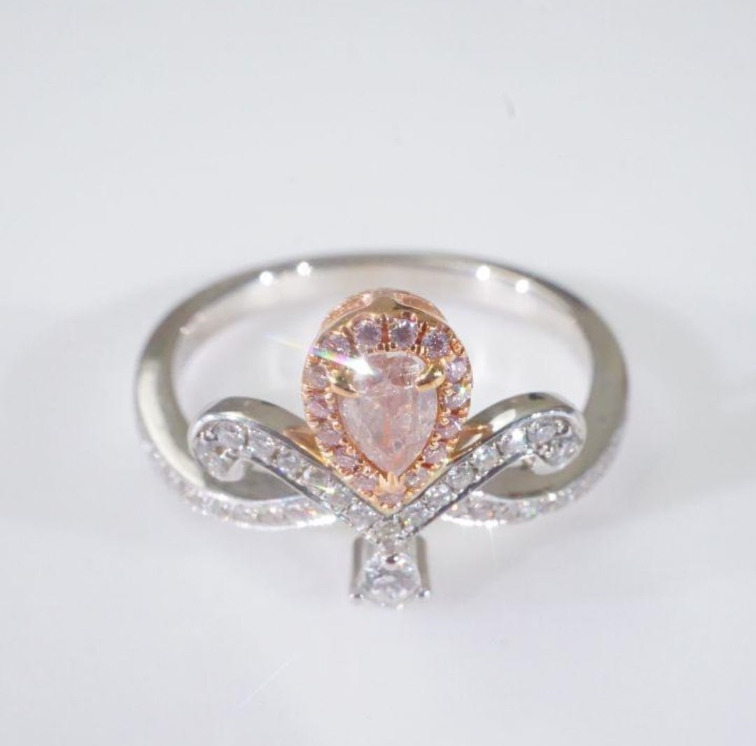 ピンクダイヤモンドの色味を引き立てる上質な地金使いで、