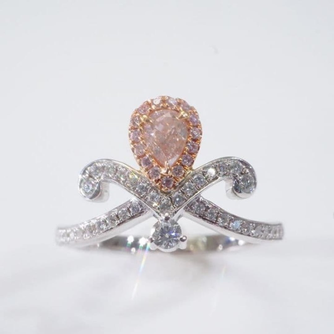まるで指先に小さなティアラを纏ったような、可憐なピンクダイヤモンドリング。