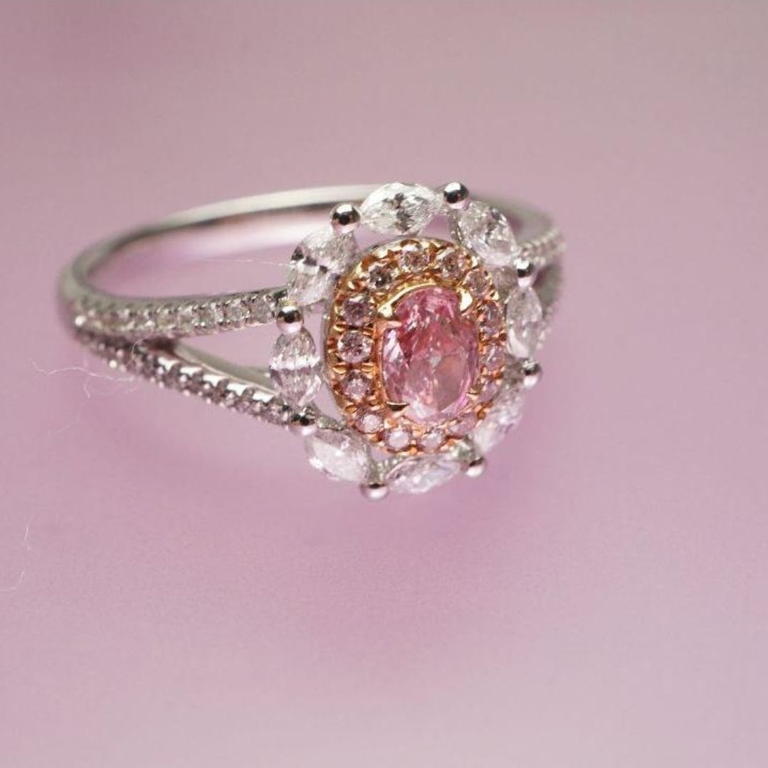 ピンクダイヤの色味を引き立てつつ、洗練された印象を与えます。