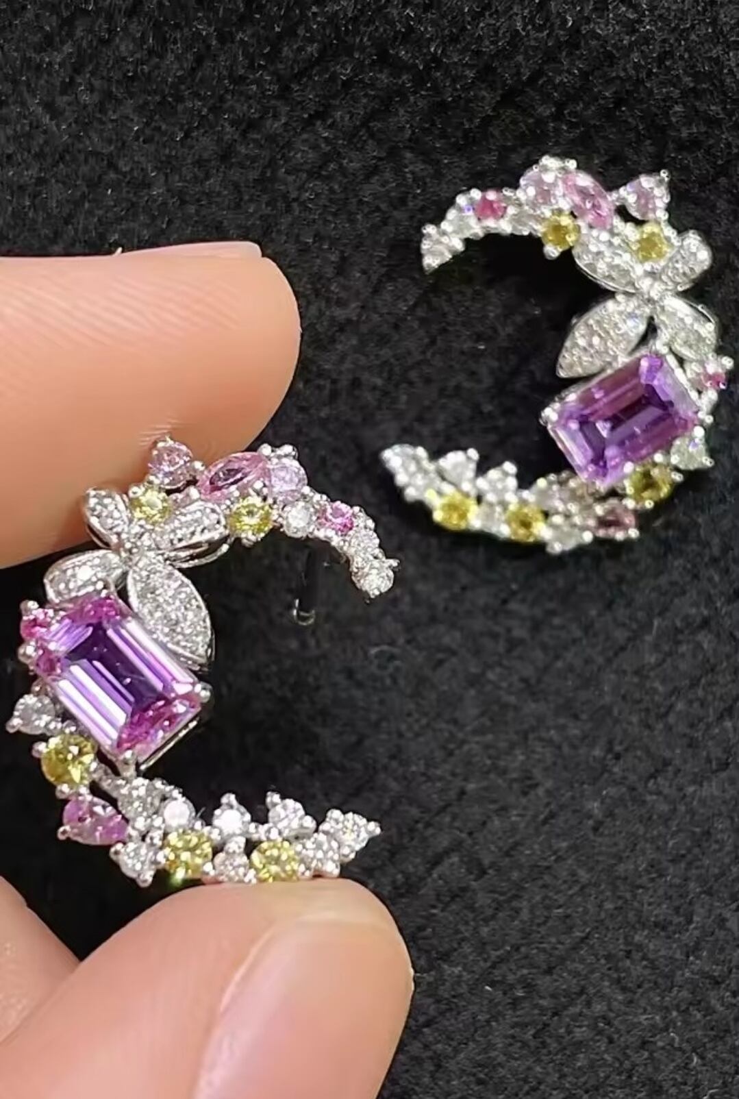 センターにはパープルサファイア 計1.32ctをセッティング。透明感のある上品な紫色が、耳元に洗練された印象を与えます。
