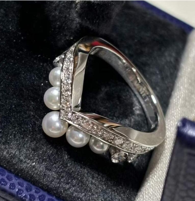 上質なアコヤ真珠の艶やかな輝きと、繊細にセッティングされたダイヤモンドが美しく調和するエレガントリング。