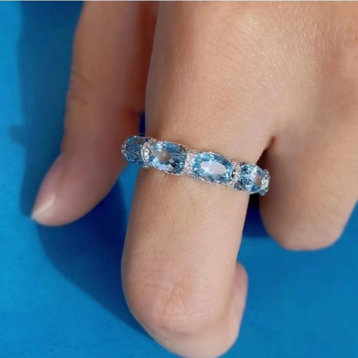 爽やかなブルーの輝きが指元を優雅に彩ります。