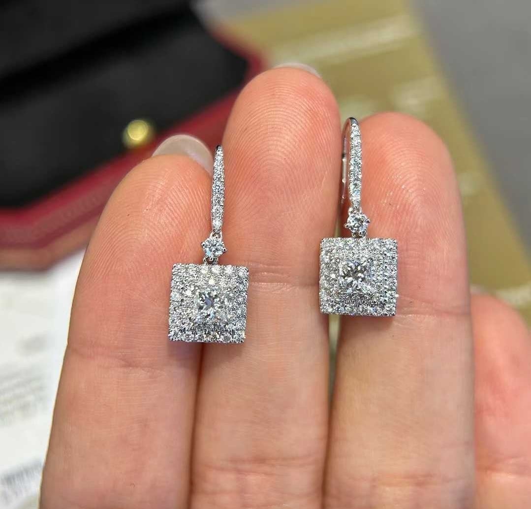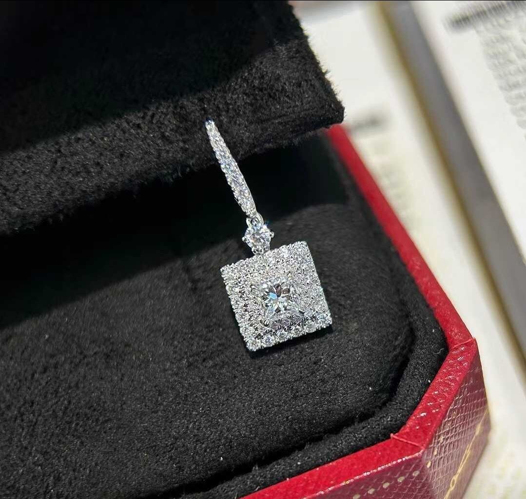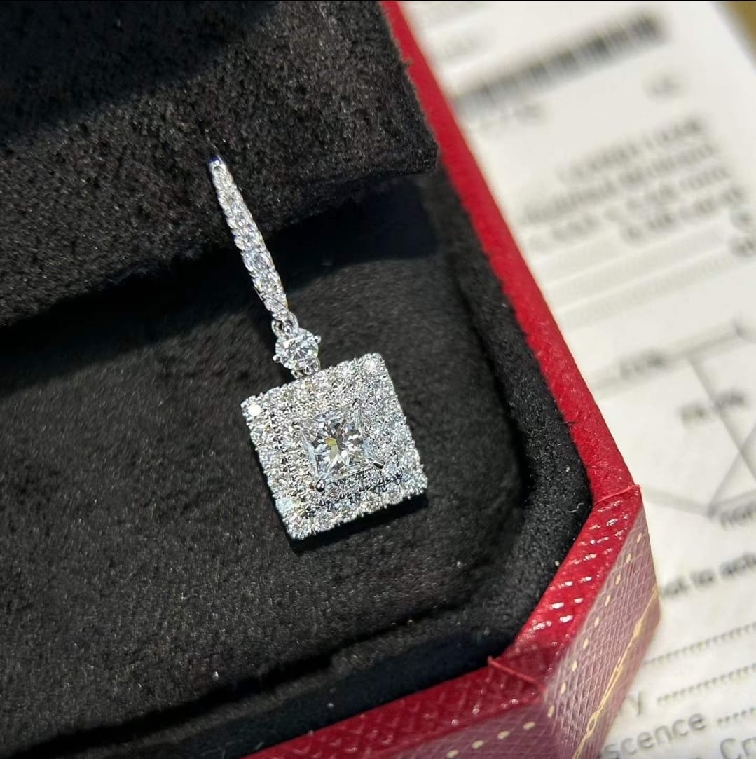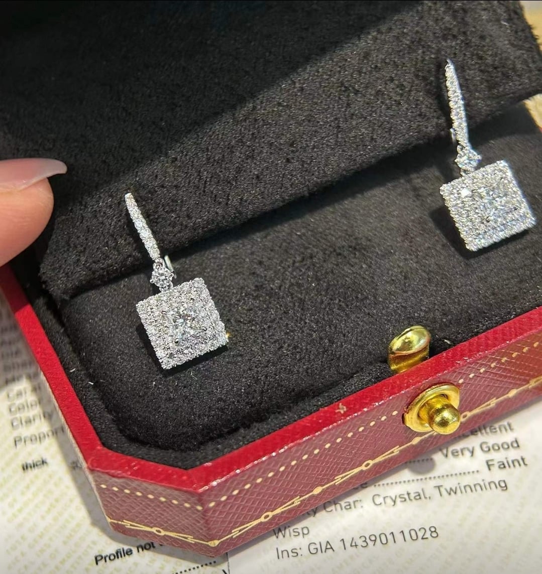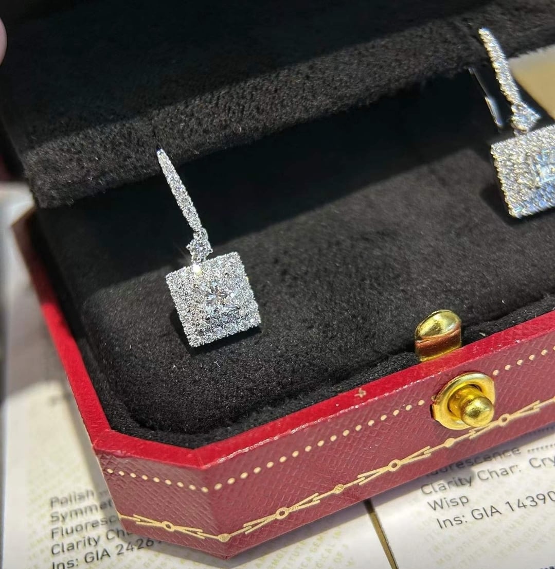 GIA鑑定書付き プリンセスカット ダイヤモンドピアス
