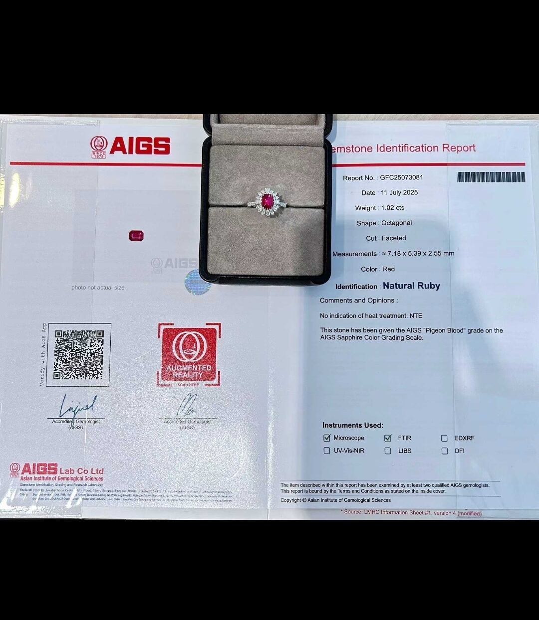 AIGS(Asian Institute of Gemological Sciences)証明書付き。