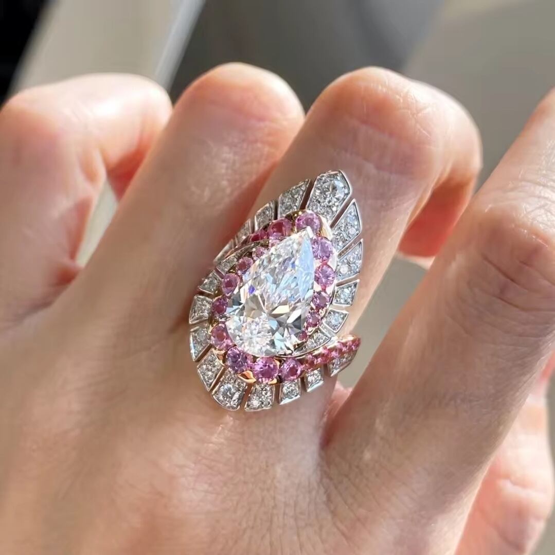 圧巻の存在感を放つ、3.05ct ペアシェイプのラボグロウンダイヤモンドをセンターに据えたラグジュアリーリング。