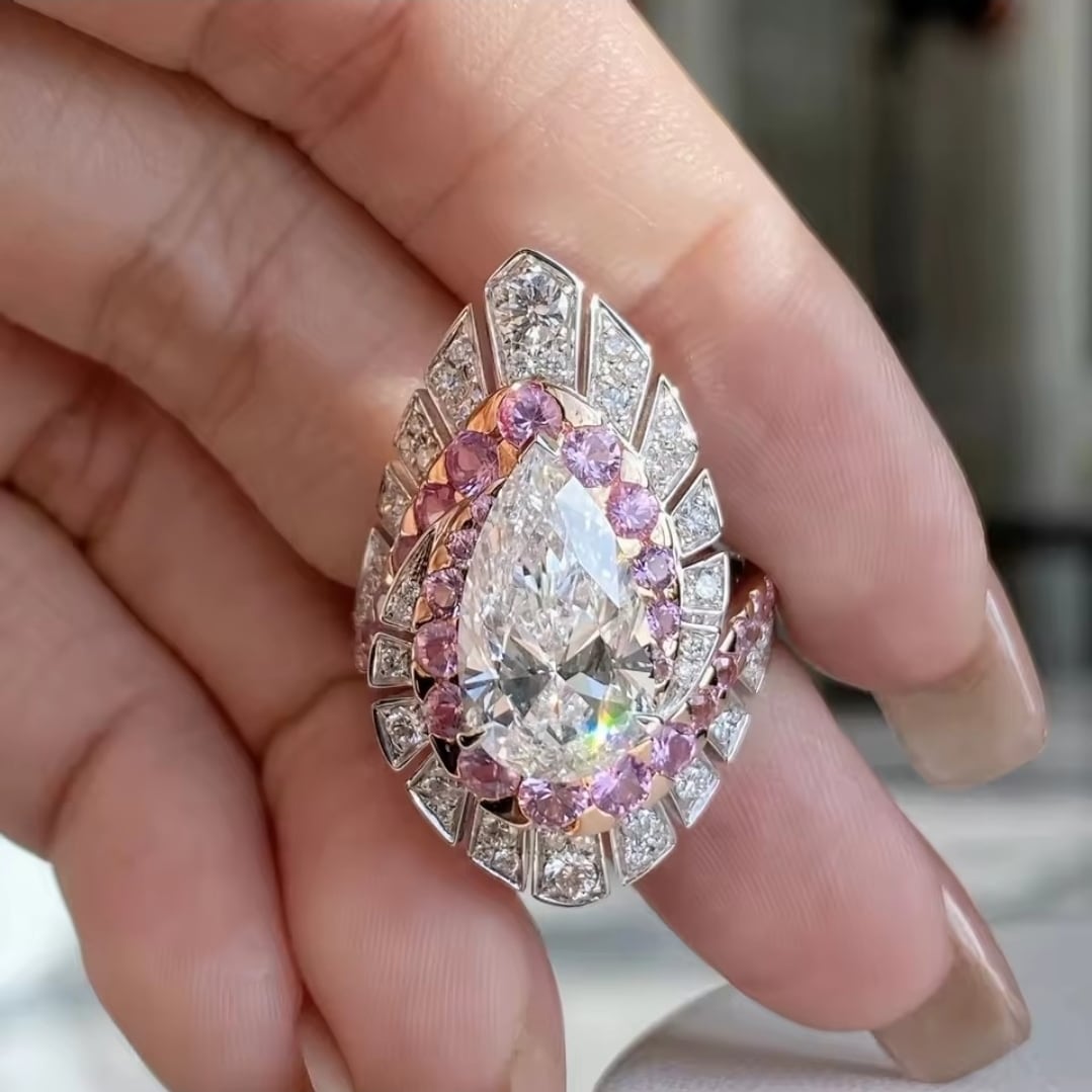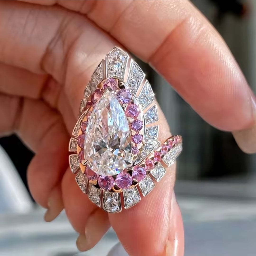 IGI鑑定書付属 3.05ct ペアシェイプ ラボグロウンダイヤモンド × ピンクダイヤモンド ラグジュアリーリング